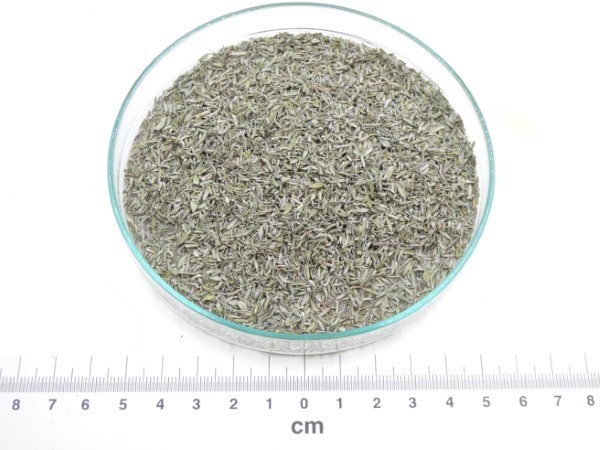 O tomilho-vulgar bio (Thymus vulgaris L.) é uma planta aromática fornecida a granel para uso profissional, amplamente utilizada na culinária.